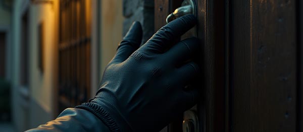 Nonostante il messaggio intimidatorio del cartello, un paio di mani si avvicinano alla serratura, cercando di manipolarla con strumenti di scasso. Sono convinti di poter agire indisturbati, forti del favore delle tenebre e della rapidità dei loro gesti furtivi.